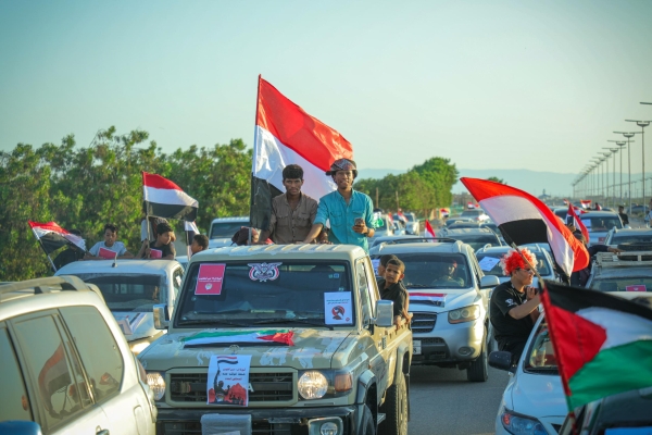 وشهدت مدينة الغيضة مسيرة جماهيرية بمشاركة واسعة، رفع خلالها المحتفون أعلام الجمهورية اليمنية وأعلام دولة فلسطين، في تعبيرٍ عن وحدة القضايا العادلة للشعوب الحرة.