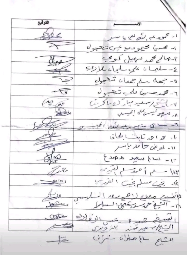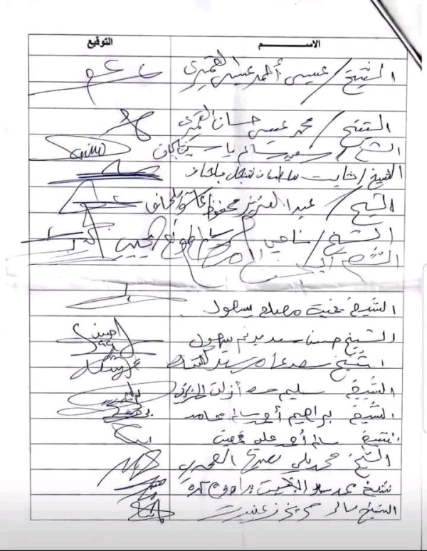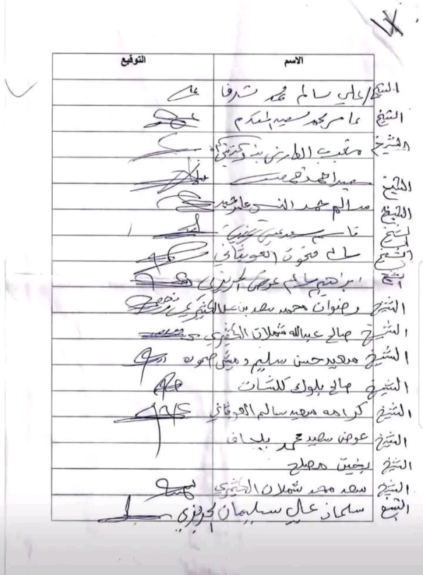 وأكد الموقعون أن الحفاظ على أمن واستقرار المهرة يمثل "مصلحة وطنية عليا" ومسؤولية مشتركة بين الدولة والمجتمع، مثمّنين في الوقت ذاته دور السلطة المحلية برئاسة محافظ المهرة محمد علي ياسر، والأجهزة الرسمية في تعزيز الاستقرار.