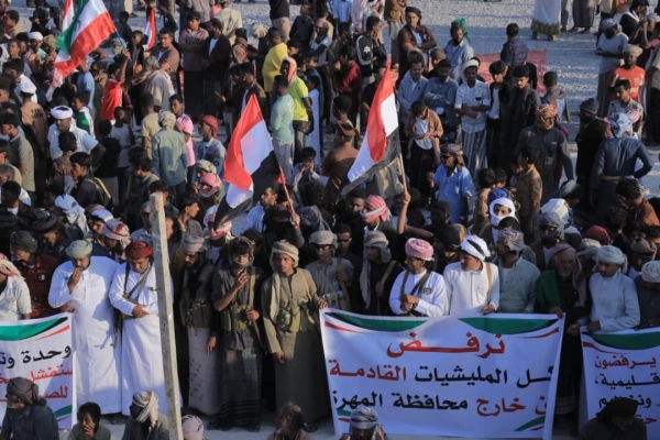وطالب المشاركون بخروج مليشيا المجلس الانتقالي الجنوبي المدعومة من دولة الإمارات، معتبرين وجودها عامل توتر يهدد السكينة العامة والاستقرار في المحافظة، ومؤكدين تمسكهم بالطابع السلمي للمهرة ورفضهم لأي مظاهر عسكرية أو مليشياوية.